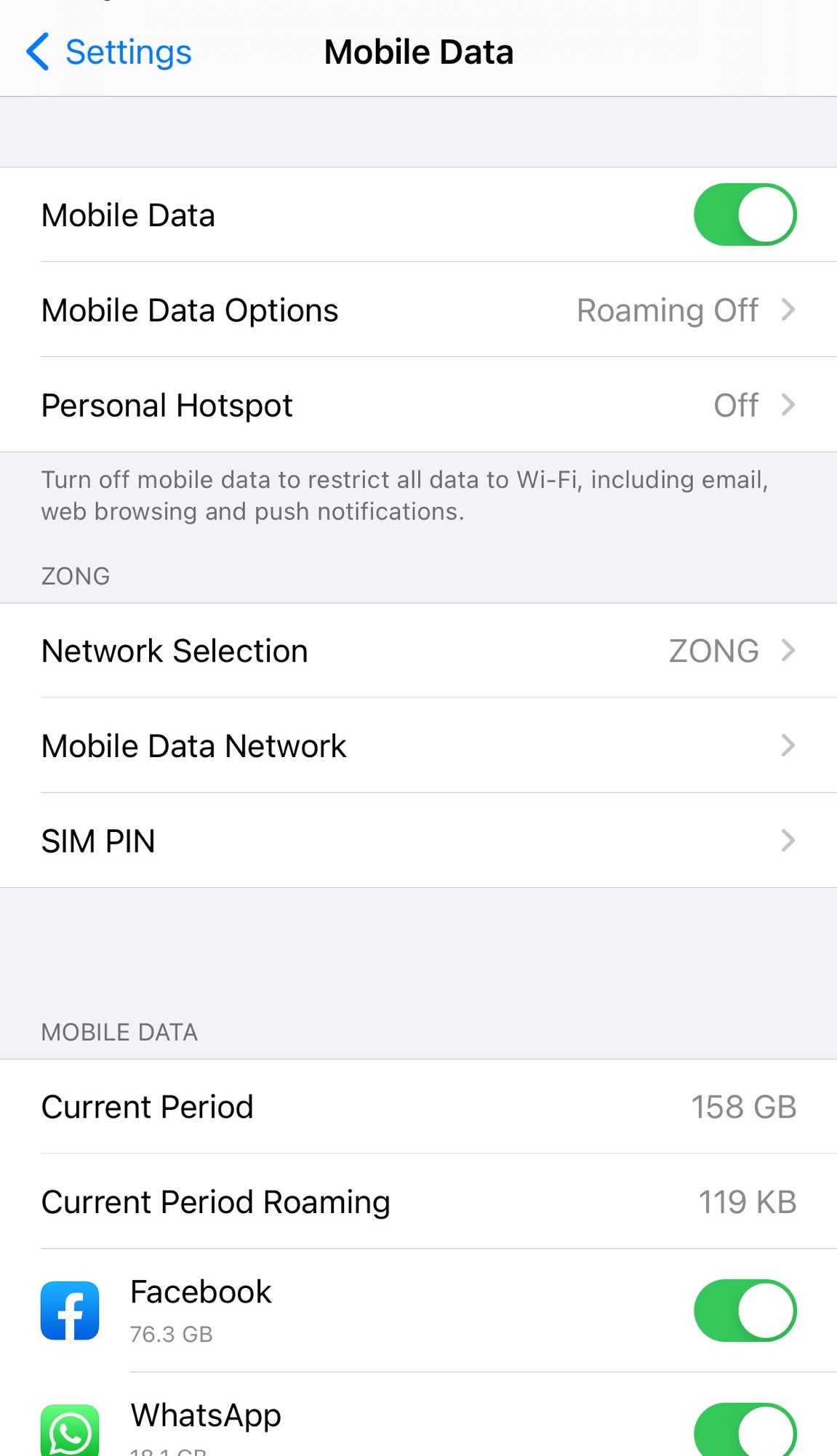 - Go to the Settings and then to “Mobile Data”.